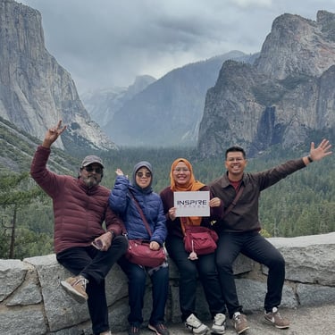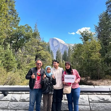 Sampai je di Yosemite, kita terus singgah di Bridal Veil Falls, air terjun yang cantik dan menyegarkan mata. Lepas tu, kita nikmati pemandangan ikonik Half Dome dan Hanging Valley Viewpoint, memang spot wajib untuk ambil gambar cantik.